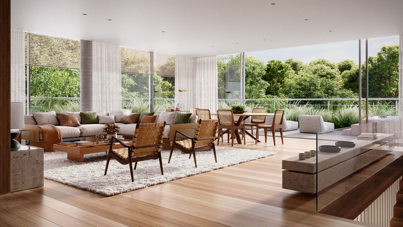Seus ambientes simples e minimalistas são conectados, mantendo a constante fluidez dos espaços e melhorando a qualidade de vida de seus moradores.